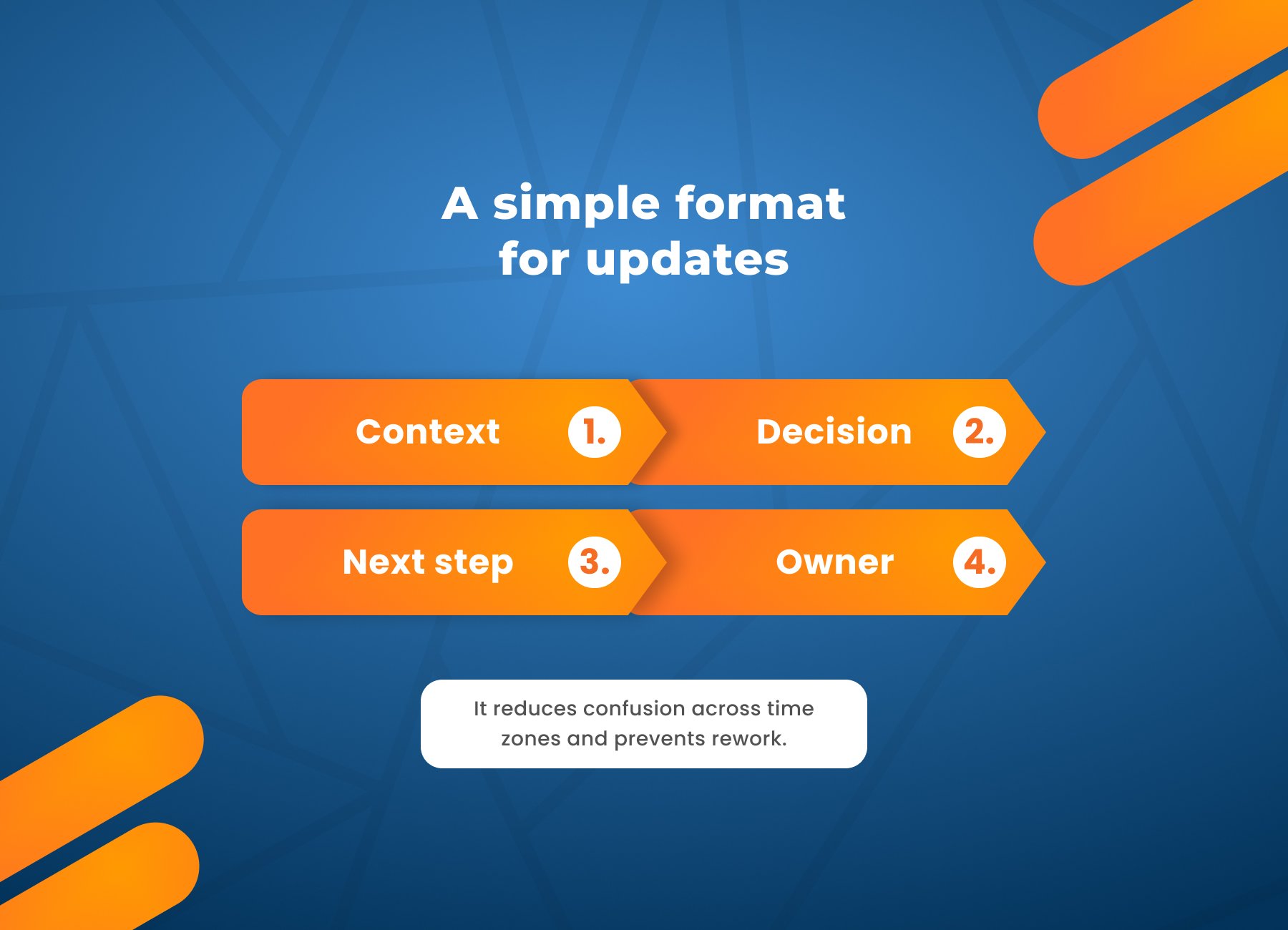 Example: Weekly priorities are set the same way every Monday. Feedback happens on a set cadence. Escalations follow a known path. That consistency turns autonomy into performance—one of the defining traits in what high-performing remote teams have in common.