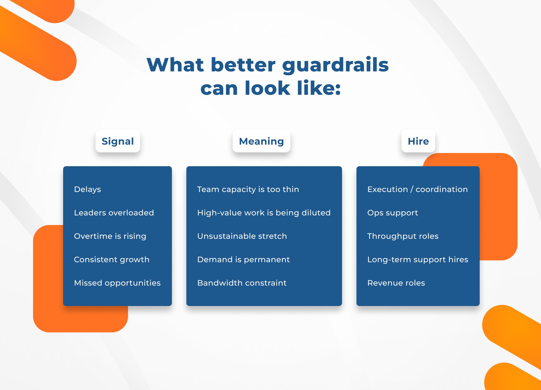 This is where adding execution-focused roles can create immediate relief. More importantly, it signals a growth transition, when demand is no longer the challenge, but the team’s ability to keep up with it.